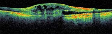 Yaşa bağlı maküla dejenerasyonu (sarı nokta hastalığı) olan bir gözde OCT